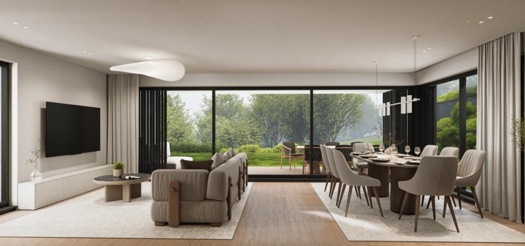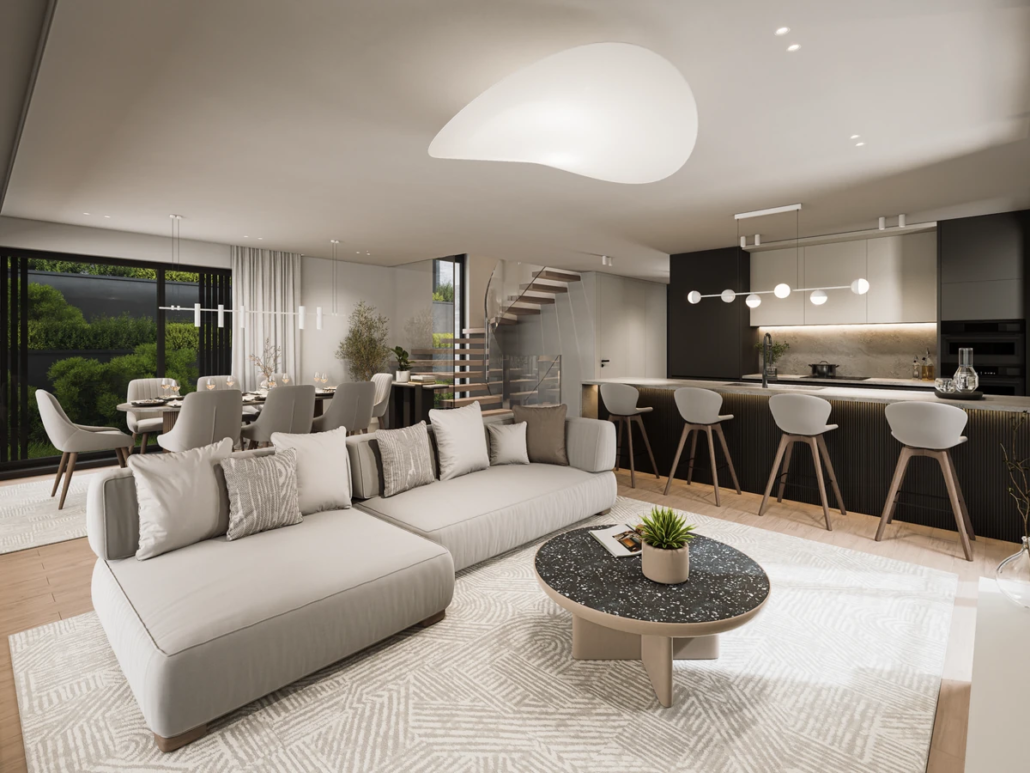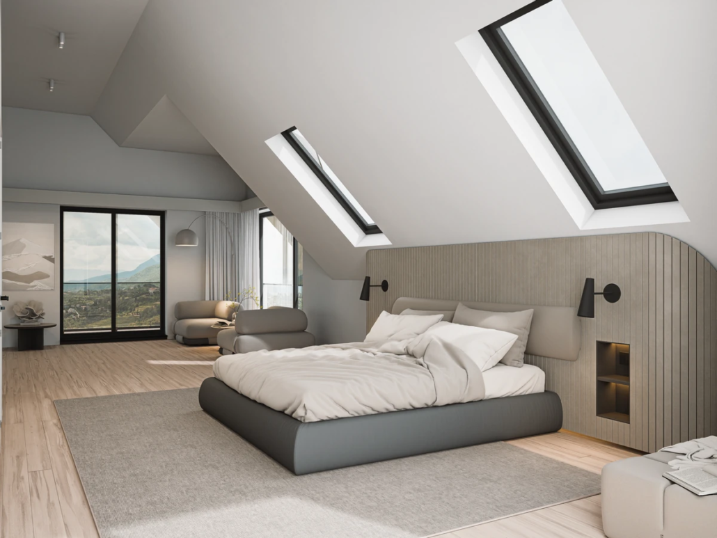 Die Architektur vereint zeitlose Eleganz mit modernem Design: grosszügige Grundrisse, raumhohe Fensterfronten und lichtdurchflutete Räume schaffen ein Ambiente von höchster Wohnqualität. Verwendet werden ausschliesslich erlesene Materialien und modernste Haustechnik, ein Premium-Standard ohne Kompromisse.